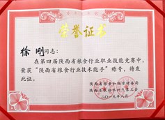 西瑞集团徐刚荣获“陕西省粮食行业技术能手”称号