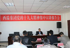 11月28日上午,西瑞集团十九大精神集中宣讲报告会在兴平园区召开。集团领导班子成员、全体中层干部、各党支部支委及团青干部共计50余人参加了报告会,集团党委书记、董事长刘利民宣讲党的十九大精神,集团党委副书记、总经理曹国梁主持宣讲会。 刘利民书记重点从十九大的…
